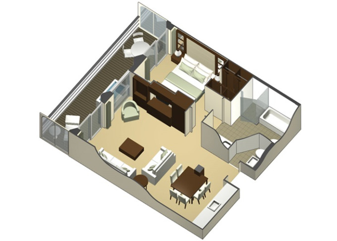 | S1 - Sky Suite 28 m² + balkón 7 m². 6. až 12. paluba. Max 4 osoby. Výhody Suite The Retreat. | 10 913 € 10 913 € za osobu |