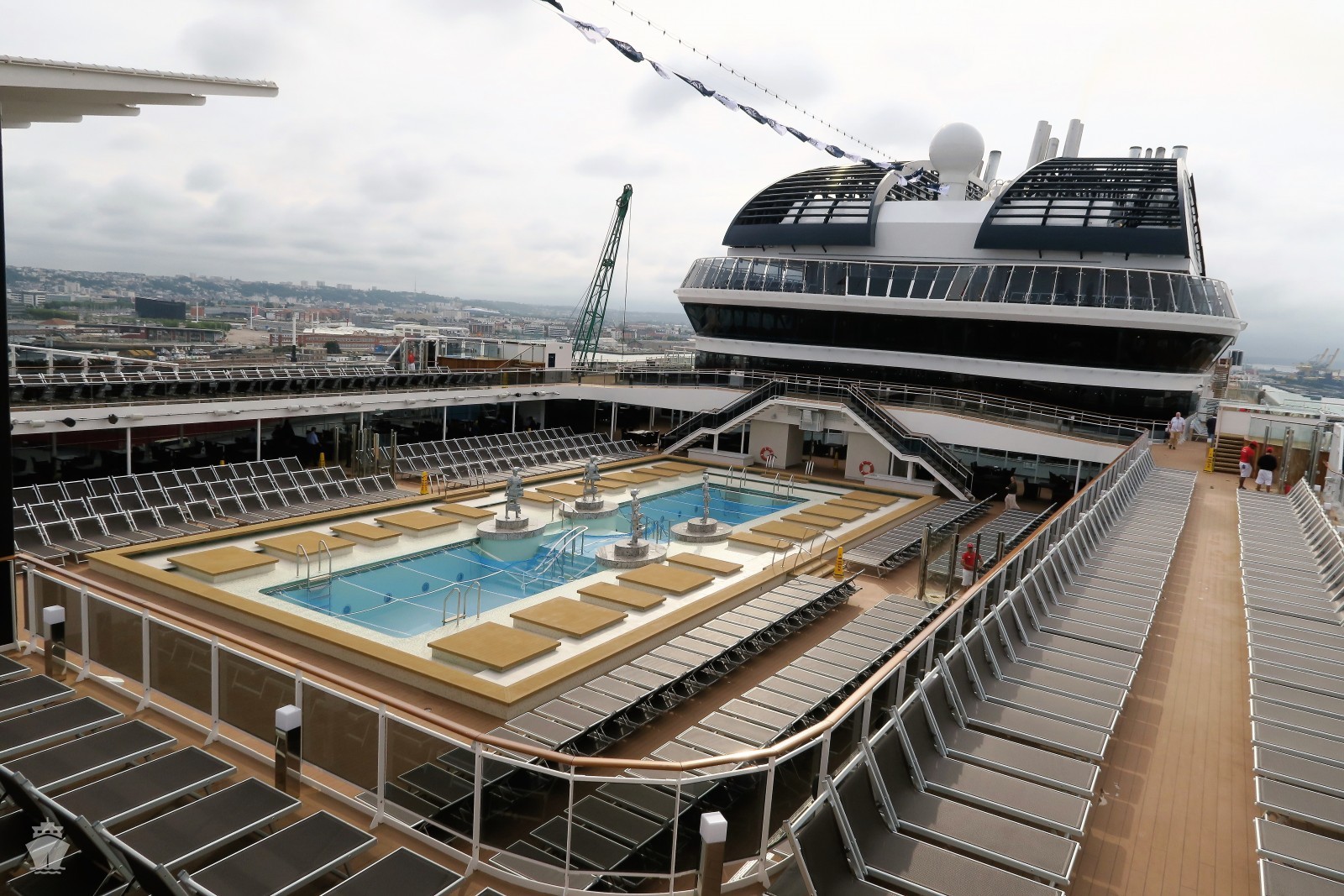 - Športové aktivity na otvorených palubách (jogging, basketbal, futbal, tenis), bazény a ležadlá