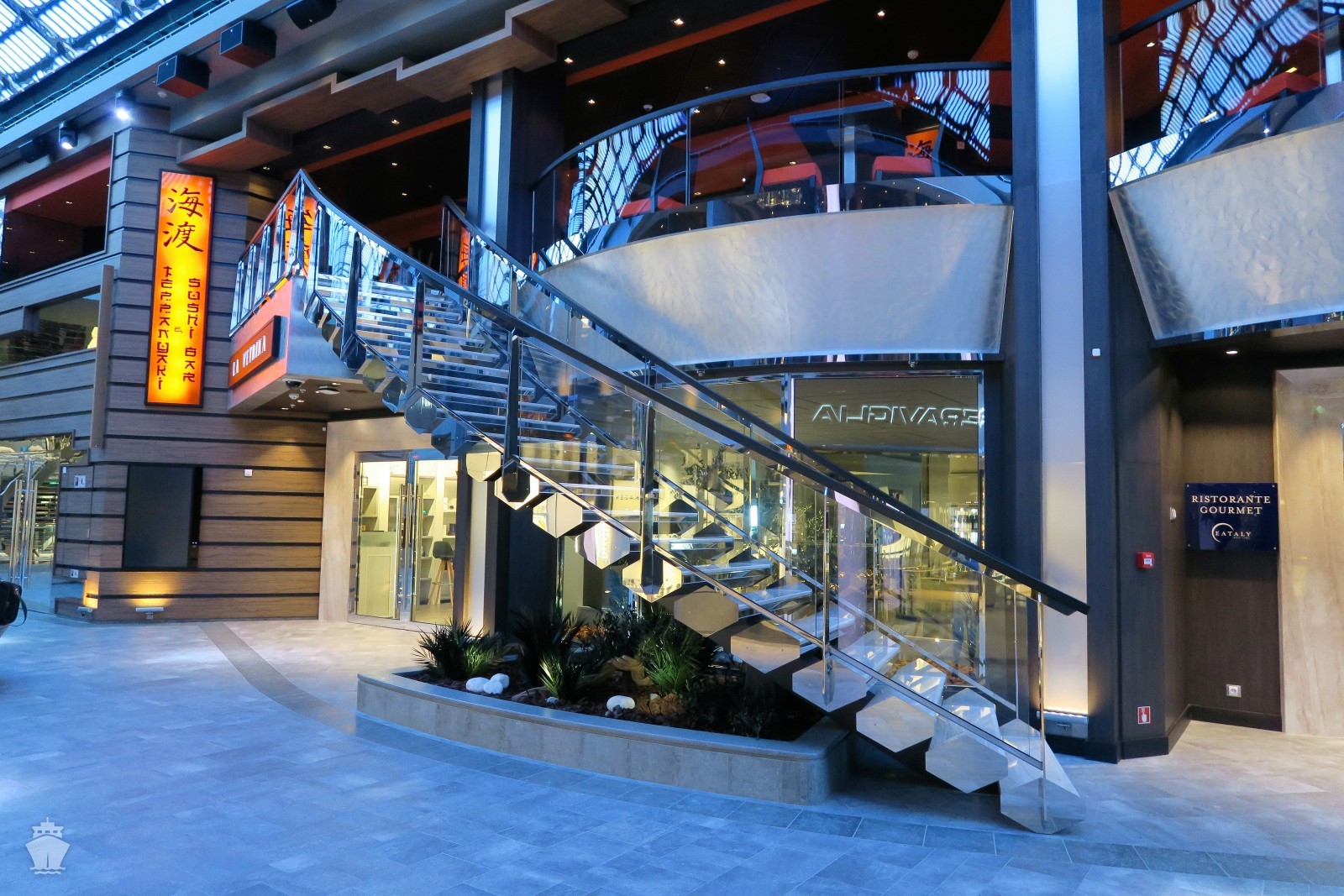 - Dvojposchodová vnútorná promenáda s obchodmi, inovatívnymi barmi, špeciálnymi reštauráciami