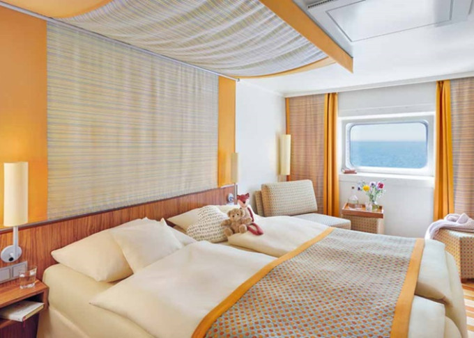 | CA - Vonkajšia kajuta PREMIUM / obmedzený výhľad 14-16,5 m². Neotvárateľné okno / obmedzený výhľad. 6. paluba. Max 2 osoby. Cenový model Premium. | 2 260 € 1 130 € za osobu | ||