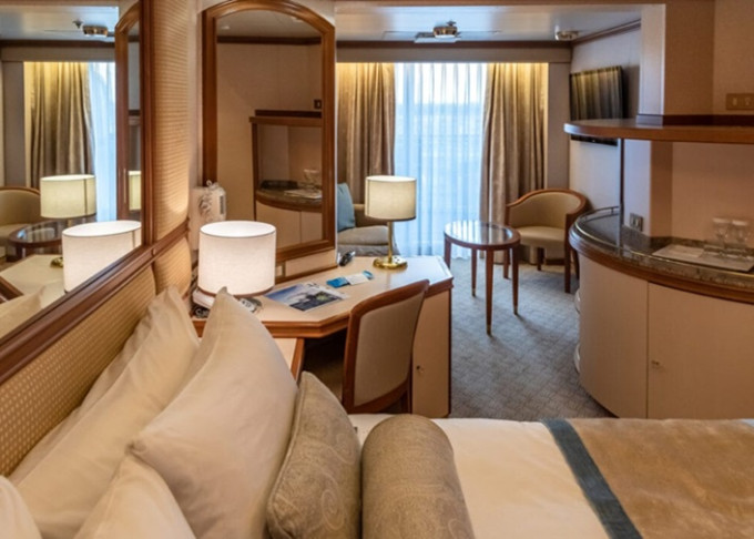 | M1 - Mini Suite s balkónom Club Class 30 m² (vrátane balkóna). Max 3 osoby (gauč). Výhody Mini Suite + Výhody Club Class. | 6 040 € 3 020 € za osobu |