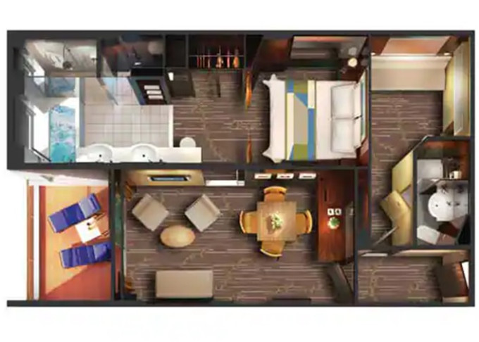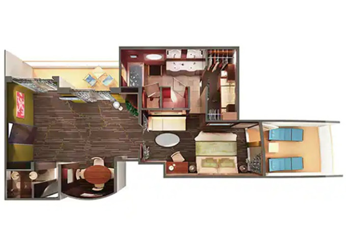 | S2 - Deluxe Owner Suite 83 m² / balkón 13 m². Vírivka. 10. paluba - vpredu. Max 4 osoby. Výhody Suite. | 8 288 € 4 144 € za osobu |