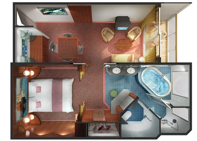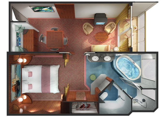 | SC - Forward-facing Deluxe Penthouse Suite 51 m² / balkón 10 m². Vírivka. 10. paluba - vpredu. Max 3 osoby. Výhody Suite. | 21 152 € 10 576 € za osobu | ||