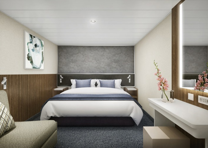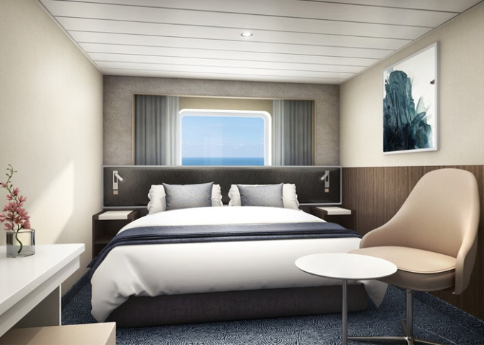 | O3 - Vonkajšia kajuta Deluxe 26 m². Veľké neotvárateľné okno. 8. paluba - vpredu. Max 3 osoby. | 5 802 € 2 901 € za osobu | ||